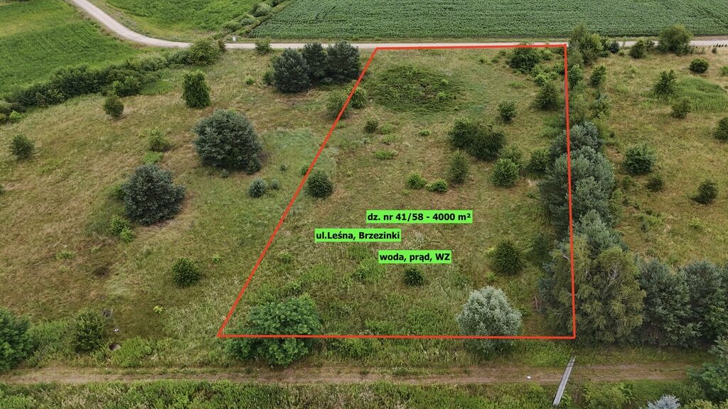 Działka budowlana 4000 m² - Brzezinki| Brzezinki, gm. Jelcz-Laskowice | Media przy działce | WZ | Las w